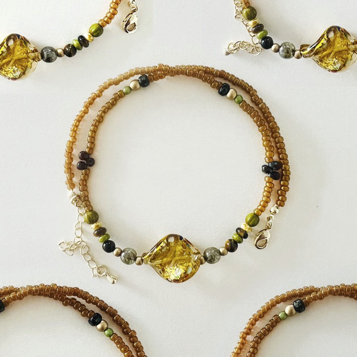 Esta colección de joyas de cuentas de vidrio checas está inspirada en la belleza y el misterio de los bosques y las plantas. Las cuentas checas transparentes y radiantes, combinadas con delicados diseños botánicos, evocan la esencia fresca de un bosque. Ya sea para uso diario o para ocasiones especiales, estas piezas agregan un toque de elegancia natural y encanto a cualquier atuendo.